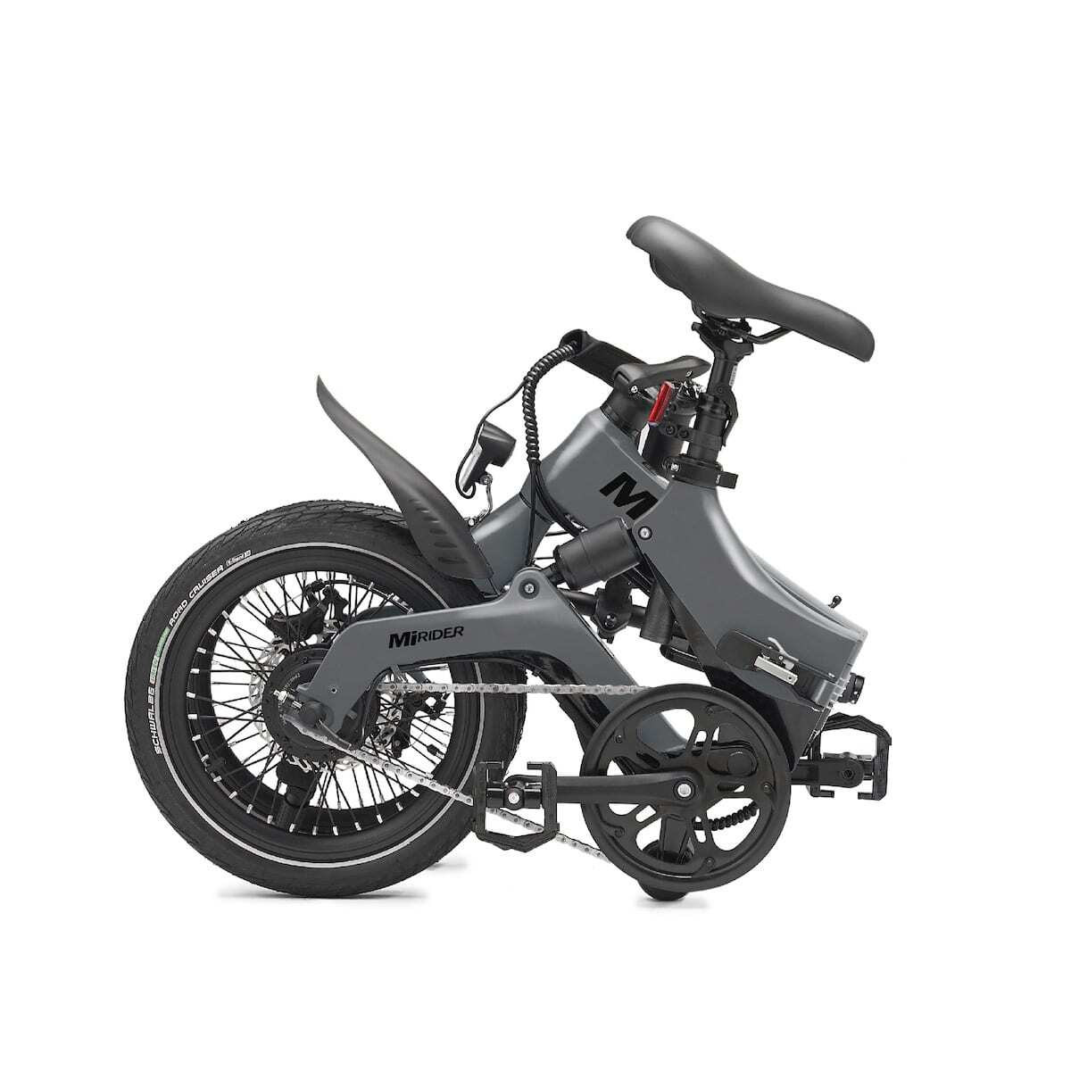 | Style | Introducing the Award Winning MiRiDER One folding ebike. The rear-suspension design perfectly balances weight with simplicity and comfort all in one sleek modern package. The quick release levers allows this e-bike to fold in seconds and its compact dimensions mean it can be conveniently carried in the car motorhome boat and train. Once more the MiRiDER One weighs in at just 17.3 kg including the battery meaning it has never been easier to transport it around. What's not to love? Motor: Geared brushless rear hub motor Nominal Power: 250 W (UK legal limit) with 40 nm of torque Pedal Assist Top Speed: 25 km/h or 15.5 mph (UK legal limit) Battery Type: Samsung 18650 Lithium-Ion Cells Battery Spec: 36 v 7 Ah / 252 Wh Battery Features: Removable and lockable (chargeable inside or off the bike) Max Range: up to 72 km or 45 miles (based on power level 1 average pace rider weight and even Max Range: up to 72 km or 45 miles (based on power level 1 average pace rider weight and even terrain) Climbing Angle: 25 degrees maximum (based on average rider weight) Charge Time: 2-3 hours (using 42 v 2.0 A UK charger supplied) Display: Multi-function LCD back-lit Controller: Sine-wave Torque Simulation KT Controller compliant with all UK legal parameters Dashboard Readouts: Speed (km/h or mph) distance travelled ODO/trip (miles/km) battery % level pedal assistance level Led headlight (on/off) Pedal Assist: 5 levels Frame/Fork: Full integrated magnesium alloy Accessories Included: Front/rear mudguards Front LED light rear reflector folding pedals kickstand & stabiliser wheel wheel magnets for secure folding & battery Folded & Unfolded Dimensions: 770*430*680 mm / 1340*575*1100 mm Brakes: Front and rear Clarks CMD-24 disk brakes Comfort: Rear spring damper Tyres: Ralson 16 x 1.75" with reflective side walls Wheels: 16" wheels with aero rims and a MiRiDER designed 1 piece front hub Chain: KMC e-bike specific Total Approximate Weight Fully Equipped: 17.3 kg Maximum recommended Rider Weight: 120 kg Rider Height: 152 cm - 195 cm / 5'0 - 6'4 Road Legal: Worldwide |