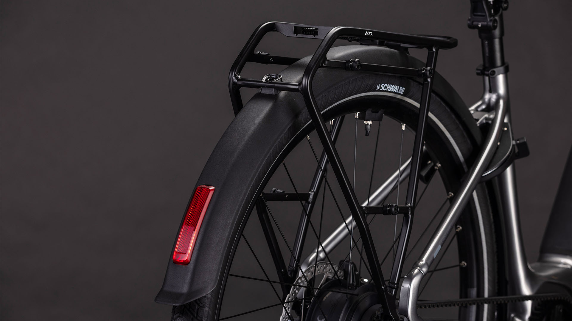 | Miscellaneous | Front light: ACID Front Light PRO-E 150 X-Connect, 12V, DC Rear light: ACID Mudguard Rear Light PRO-E, 12V, DC Kickstand: ACID FM Pure Kickstand Mudguard: ACID 50 BB-Mount Bell: Reich Cycle Bells Ringsound Carrier: ACID SIC 2.0 RILink |